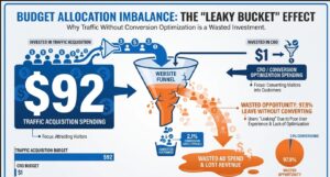The irony wasn’t lost on Rachel. Her company spent $92 on acquiring visitors for every $1 spent on converting them, mirroring the industry average according to recent data analysis of marketing budgets. Yet their conversion rate sat at 2.1%, meaning 97.9% of their expensive traffic generated zero revenue.