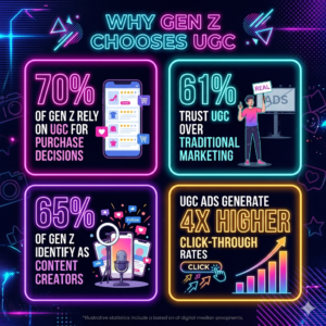 For Gen Z specifically, the numbers are unambiguous. Over 70% of Gen Z rely on UGC to make purchase decisions, and 61% say they trust user-generated content more than any other format precisely because it feels real. They grew up as creators themselves, the 2024 YouTube Culture and Trends Report found that 65% of Gen Z respondents consider themselves content creators. They know what a produced ad looks like. They know what a real recommendation looks like. And they choose accordingly.