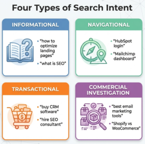 Search intent falls into four primary categories, each requiring different landing page approaches.